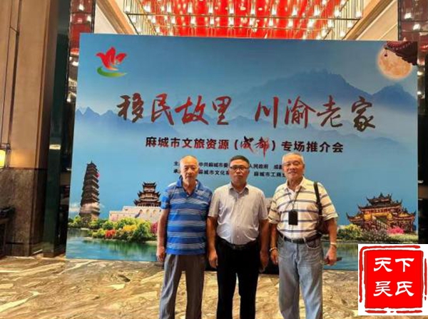 天下吴氏网讯(吴元中成都报道)“五百年前一台戏,祖祖辈辈不忘记。问君祖籍在何方,湖广麻城孝感乡。”流传久远的乡音俚语说出了移民对故乡的眷念,写下了孝感乡与移民后裔之间割不断的血脉亲情。为增强麻城孝感乡与移民后裔的血脉联系、探寻同根同源的历史文化,麻城孝感乡文化园、市档案馆、市融媒体中心组成专班奔赴成都千里寻亲。