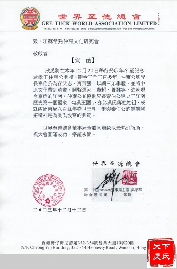 世界至德总会致常熟仲雍公祭祀典礼