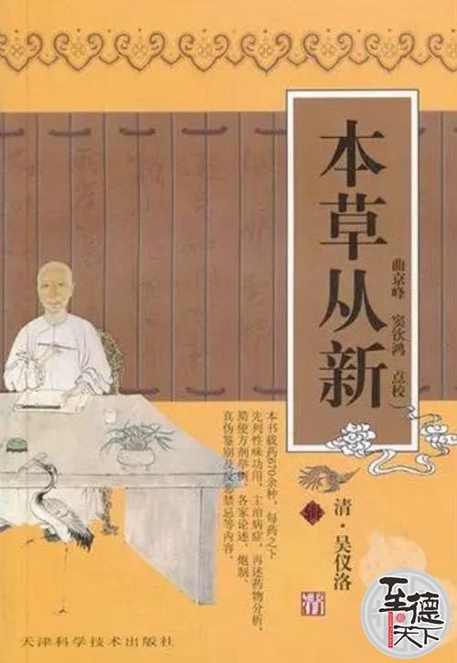 《本草从新》,十八卷,为清代流传较广的临床实用本草,清代吴仪洛撰,成书于清乾隆二十二年(1757年)。载药720余种,按《本草纲目》分类方法排列每药述性味、主治、功用、辨伪、修治等。多结合作者经验,并广泛总结历代医家的临床应用。对于同一药物的不同品种也多区别其力量厚薄,性味优劣,指出功效上的差异。新增燕窝、冬虫夏草、太子参、党参、西洋参等常用药。