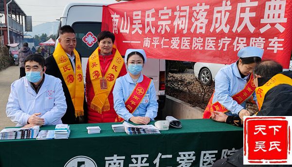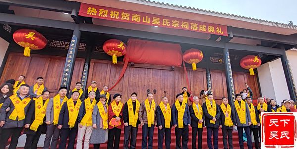 主持人介绍参加仪式的嘉宾和领导,向大家庆典仪式的流程和各项礼仪。由南山村吴氏祠堂宗祠重建理事会理事吴里汉致欢迎辞。南山村吴氏祠堂宗祠重建理事会理事吴小明介祠建设情况,集体诵读吴氏家训,宣读贺信贺礼名单,河南固始县代表祖地致贺词,捐资企业家代表致贺词,南平市吴文化研究会会长吴民友致贺词,延平区政协,南山镇政府,福建省吴氏宗亲总会等代表先后致词。吴氏祠堂揭牌仪式,祭拜吴氏开姓始祖泰伯公,传代始祖仲雍公入迁始祖并敬香叩拜及合影吴氏全家福。