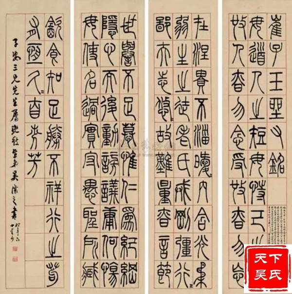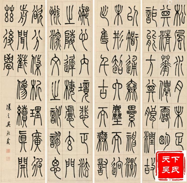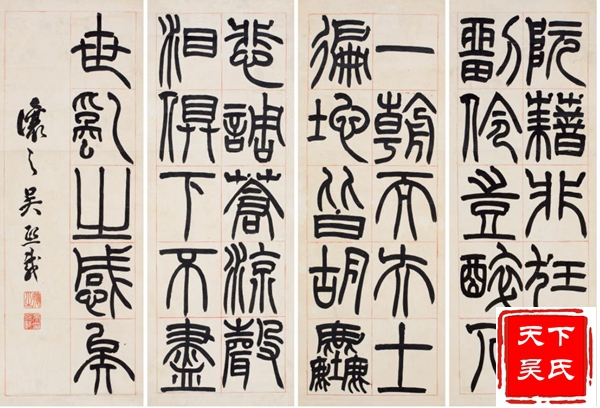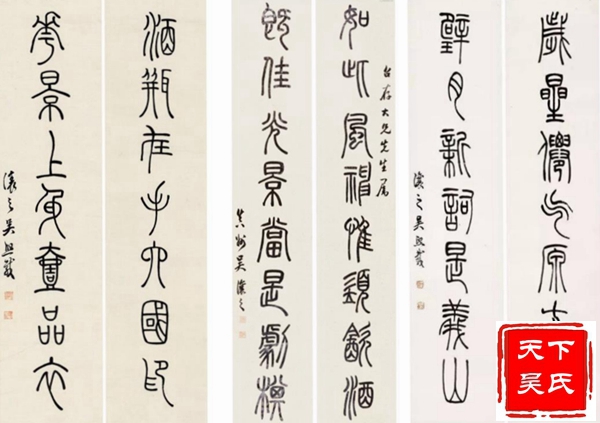 吴熙载他长期寓居扬州,以卖书画刻印为生,晚年落魄穷困,栖身寺庙借僧房鬻书,潦倒而终。吴煕载是包世臣的入室弟子。其行草学包世臣,篆隶及篆刻则师法邓石如。尤其是篆刻,不仅自成面目,而且进一步完善了邓派印风,后来学邓派印者,多从吴让之入手。吴煕载以篆书和隶书最为知名。其篆书点画舒展飘逸,结体瘦长疏朗,行笔稳健流畅。古朴虽不及邓石如,而灵动典雅似则过之,颇具妩媚优雅之趣,在晚清书坛享有很高的声誉。对后来的赵之谦、吴昌硕均有影响。