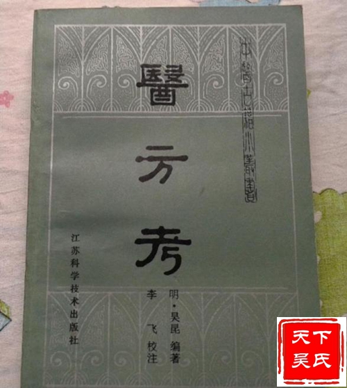 方剂之贡献 吴氏壮年曾致力医方研究。这是因为吴氏从医十八年后,贽见过一些医家,其中什九既昧于经论,又多不谙方旨药性,故疗病每使病人难愈。为此吴氏发志取医方七百余首,按证排列,逐方发其微义,书称《医方考》,计六卷。这是一部从临床实用着眼的医方。全书分七十二门,包括内、外、妇、儿、五官各科证候。各门首叙病因,次列方剂,再列适用证候及用法、注意事项等。尤其值得重视的是每方后所附之方解,考证精详,文字清晰,很见功力。使读者不仅易于领会方旨,且可便于掌握治病用药,方剂加减之要领。