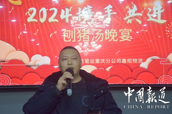 中国报道讯(吴蜀丰通讯员吴天下)1月31日,重庆鑫昭物流有限公司在重庆南岸区荣茶园印象山水举办携手2024欢迎晚宴。