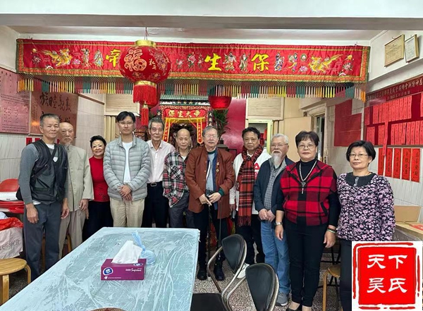 左1吴鹏副主席、左2香港太平坤士吴锦华、左3吴炎逵主席、右1吴国荣副主席、右2吴桂宣总务