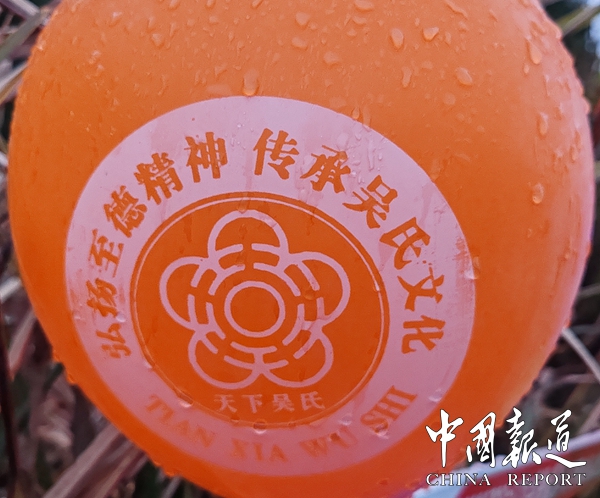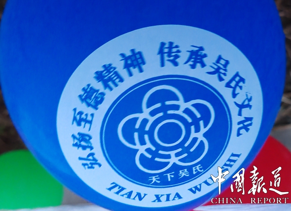 在活动现场,拱门、立柱及数十条横副,数百面印有“重庆吴氏”的彩旗在微风中飘扬,2000多个彩色汽球上引人注目的“吴”字及“吴氏徽标”,还有“弘扬至德精神,传承吴氏文化。”主题词为团拜会增添浓郁祥和氛围。