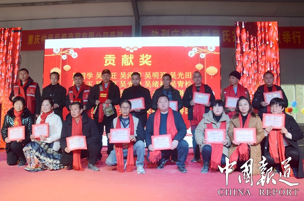 万州吴氏代表吴锡春曾经因病返贫经数万元资助致感谢词,向6位年八旬以上老人献花颁发慰问金,吴明开介绍关于续修吴氏谱事宜,优秀吴氏代表吴凯峰致辞,渝吴总会(重庆)文化交流中心会长吴世平致辞,演唱伴奏《至德流芳》精典歌曲及舞蹈《吴氏一家亲》。会上还表彰有突出贡献的先进个人并颁发证书。颁发卓越贡献奖有吴传勇、吴体宏、吴春华,特殊贡献奖,吴浚铭、吴雪松、吴晓玲、吴基华,仲雍后裔商贸有限公司,特别贡献奖有吴绪宝、吴善军、、吴光金、吴小波、吴小妹、吴霜、吴绪兰、吴刚、吴继祥。贡献奖有吴明学、吴代旺、吴泽秀、吴明开、吴光田、吴光玉、吴光学、吴光清、吴绪祥、吴青松、吴永发、吴小东、吴建革、吴永林、吴继国、吴永超、吴平、吴锡君、吴明华、吴元会、吴淑琼、吴永列、吴明万、吴德富、吴善国等。