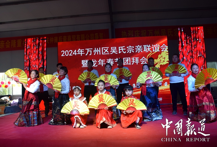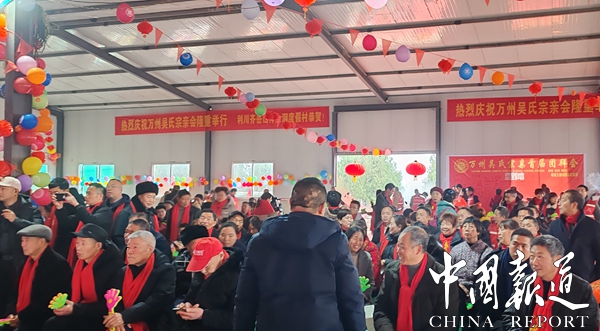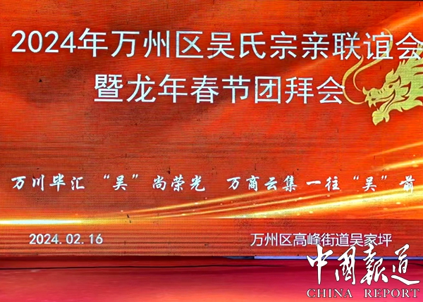 中国报道讯(吴蜀丰通讯员吴汉民 吴永烈)2月16日,春风和熙,阳光灿烂,在重庆市万州区高峰街道灵风村吴家坪,600余名吴姓代表参加2024年万州吴氏联谊会暨龙年春节团拜会。