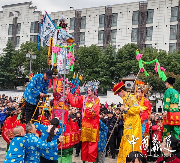 中国报道讯(吴蜀丰通讯员吴焕宰 吴伟根)2月18日,大年初九,泰伯庙会在梅里古镇热闹开场,2024吴文化发展大会系列活动同步发布,电影《泰伯》举行点映。