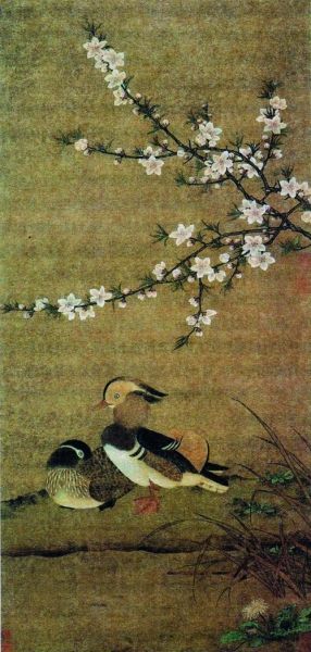 南宋院本桃花鸳鸯图长三尺零八分,阔一尺四寸七分。无款。