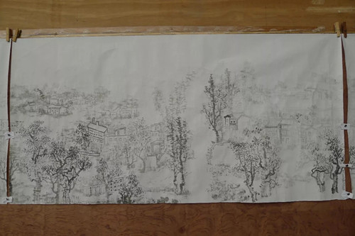 武进画家创作12米长卷画,遥观古村宣庄跃然纸上