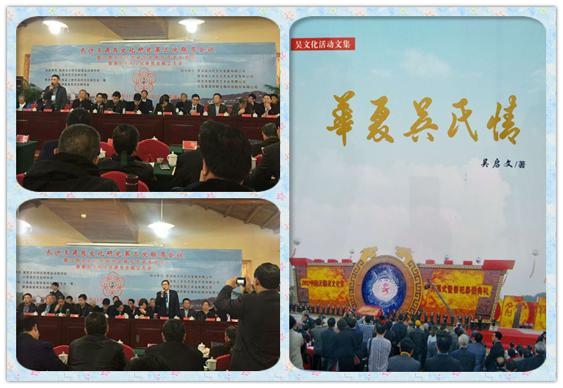 《上饶日报》记者 吴丹2017年11月21日江西婺源报道:我国第一部系统报道海内外吴文化活动的经典文集《华夏吴氏情》今日在中国最美乡村江西婺源举行首发式。参加首发式的宗亲嘉宾有江西省人大常委会上饶地区联络处主任吴怀亮,中共婺源县委副书记、县长吴云飞,婺源县政协主席汪春萍,上饶市政协文史委员会主任艾涛,婺源县人大副主任汪立新、中共婺源县委宣传部副部长詹荣均和各地文史专家吴恩培、吴永敏、吴兴勇、吴超来、吴大行和京、沪、苏、浙、赣、鄂、豫、皖、黔、鲁、闽共20余省参加“长沙王吴芮文化研究第三次联席会议”的宗亲代表约200人。首发式由江西吴氏文史研究会会长吴广凡主持。《中国农民报》湖南记者站站长吴增魁,介绍了本书的内容和发行的意义,然后由艾涛主任和吴增魁站长揭牌。