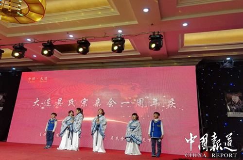 中国报道讯(记者吴蜀丰 特约撰稿 吴文渊 吴庆尧 吴丽杰)辽宁省大连金普新区至德企业文化促进会成立大会暨中国•大连吴氏宗亲会周年庆典仪式近日在金元大酒店隆重举行,200多名吴氏宗亲应邀出席参加盛会,辽宁吴氏宗亲文化经济促进会筹备委员会专程从沈阳赶来参会,参会代表并就弘扬祖德、拉动地方经济、宗亲联谊互动等事项与大连宗亲进行交流。