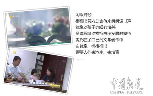 闲暇时分梧桐书院内总会传来朗朗读书声就像对孩子的细心培养,吴谨程将对梧桐书院发展的期待寄托在了自己的文学创作中它就像一棵梧桐书需要人们去浇水、去培育。(晋江电视台)