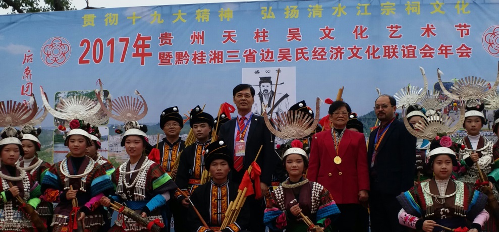 11月11日,贵州省远口(盛公)吴文化节及黔东南三省边广西、湖南、贵州吴文化经济发展(第三届)联谊会圆满结束!参会苗族侗族等吴氏宗亲嘉宾共2000人左右。第二届世界吴氏宗亲总会会长吴良民主席与香港吴氏宗亲总会成、以及原广西吴氏宗亲总会长吴健琴宗姐等海内外参加了本次大会。