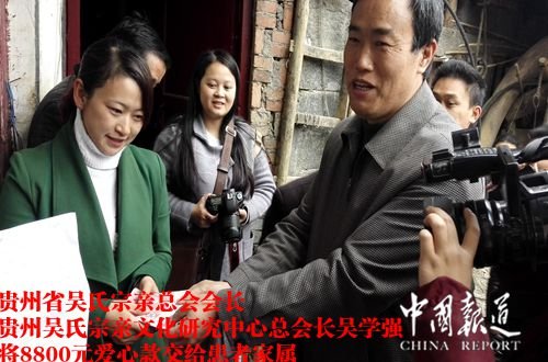 我们只是应微微薄之力,希望社会各位爱心人士伸出援助之手彰显大爱无疆之善举。贵州吴氏宗亲文化研究中心响应习主席号召,弘扬中国传统文化美德的宗旨,呼吁广大的热心群众和医疗部门,政府职能部门在中国报道以传递正能量为己任的引导下,使这个无助的家庭能得到更多的,有益的,效率的帮助。贵州省吴氏宗亲总会会长、贵州吴氏宗亲文化研究中心总会长吴学强真诚告诉记者。