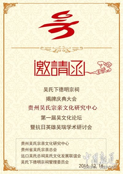 贵州省吴氏宗亲总会邀请函●12月18日相约三穗