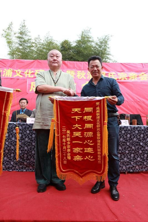 2017年10月28日,中国传统的九九重阳节,安徽省池州市贵池区里山街道白洋河畔,来自合肥、安庆和池州各地的150余名代表欢聚一堂,庆祝池州秋浦文化研究会暨秋浦吴氏宗亲会成立。会场设置在风景如画的白洋河畔,金秋十月天高气爽鸟语花香,喜庆的鞭炮和庄严的国歌,在青山绿水间回荡。