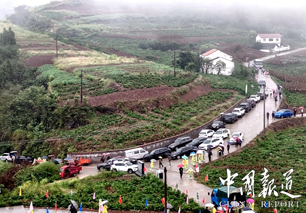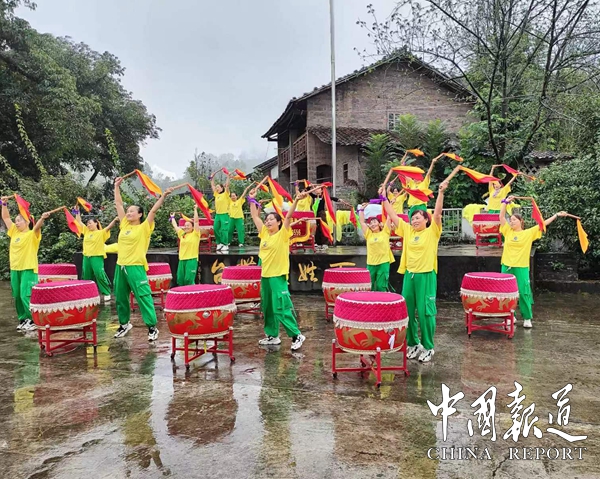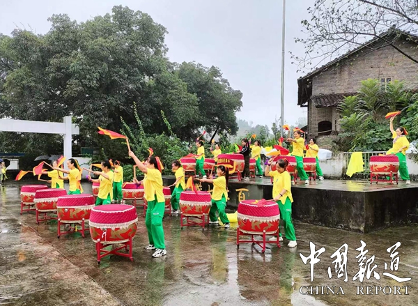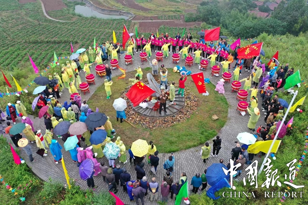 中国报道讯(吴蜀丰通讯员吴陶勇)细雨润无声,一场秋雨虽然不停地下着,却丝毫没有动摇阻挡农民的喜悦之情。9月23日,为庆祝第五个中国农民丰收节,重庆市丰都县境内的民间艺木表演团自发组织前往丰都县北岸十直镇开花寺村、莲花村及树人镇万寿桥村举办庆祝活动。