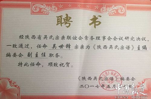 在全省各地市集中恢复一批吴氏祠堂,此项工作任务重!需要的资金和用地规划等方面需要提前规划。省联谊会调整了部分领导班子成员,经过常务理事一致通过,任命吴世锋宗亲为陕西省吴氏宗亲联谊会秘书长,兼任《陕西省吴氏宗谱》编委会主编;副主任;