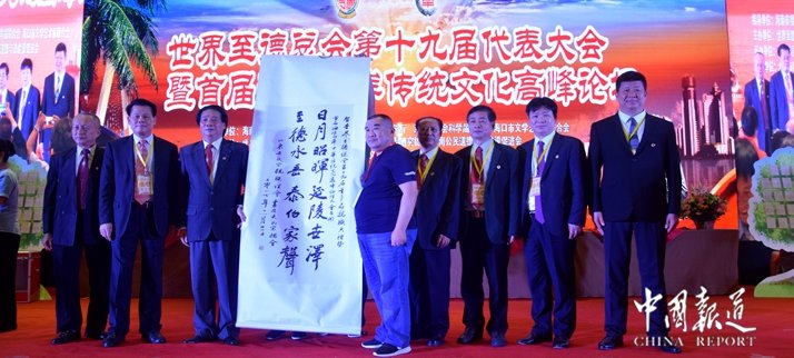 中国报道讯(记者吴蜀丰特约通讯员吴梅 吴乾山)由世界至德总会董事局、台湾一国两制研究协会、海南省公民道德与法建设促进会、北京孝行天下文化传播中心等共同发起举办的“第19届(2018-2022)世界至德总会董事局就职典礼暨首届海峡两岸中华传统文化高峰论坛”于2017年11月10日至13日在海南省举行。