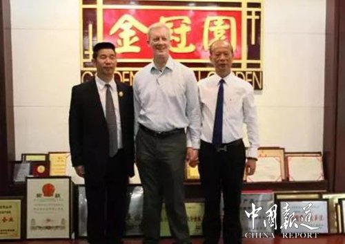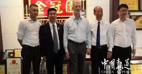 11月10日,全美州农业厅联合会考察团莅临金冠食品(福建)有限公司参观考察,在晋江商务局领导及晋江餐饮协会会长胡满荣,董事长吴文富等有关负责人陪同下,参观金冠园企业生产酱油、醋的发酵流程,天然晒场等,全美州农业厅联合会展览部总监杜威先生对“金冠园”牌酱油、醋是采用东北大豆结合闽南温和气候日晒夜露传统发酵酿造过程发表了高度的评价,并邀请晋江餐饮协会在政府领导组织下,带领餐饮考察团到美国参加2018年全美餐饮行业展盛会。